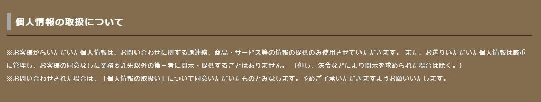 ※お問い合わせされた場合は、「個人情報の取扱い」について同意いただいたものとみなします。予めご了承いただきますようお願いいたします。